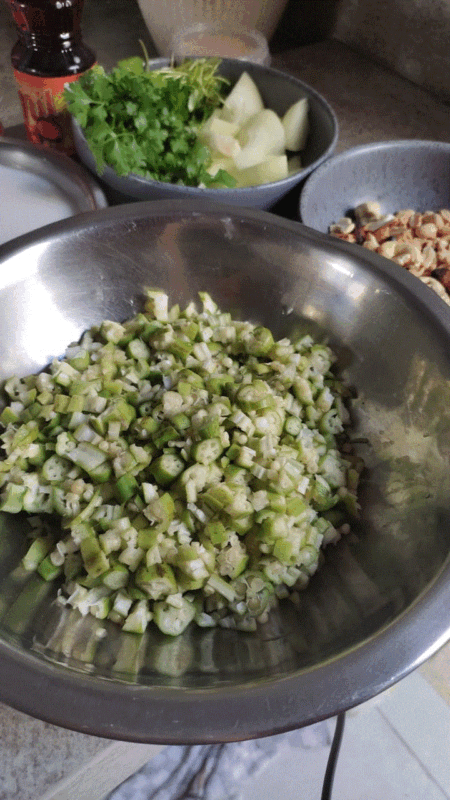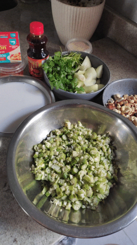 - 300g de quiabo cortado em cubos pequenos