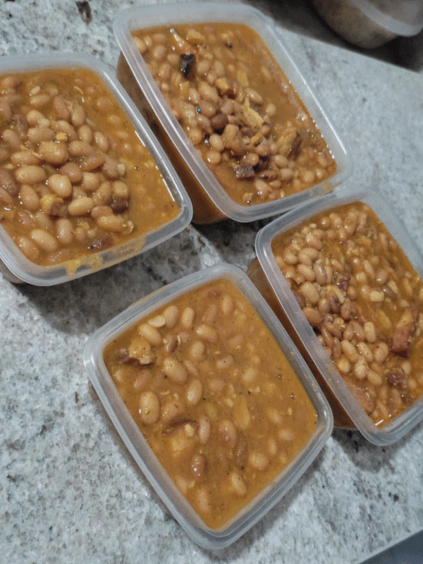 Aqui na Nossa Casa, gostamos de praticidade! Por isso, depois que o feijão esfria, divido em porções individuais e congelo em potes plásticos transparentes. Assim, é só tirar do congelador na noite anterior e ter feijão fresquinho sempre à mão.