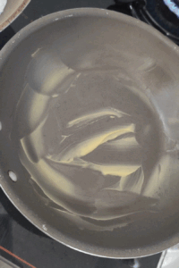 Antes de tudo, pegue uma frigideira e unte o fundo com a manteiga — mas lembre-se, ela deve estar fria.